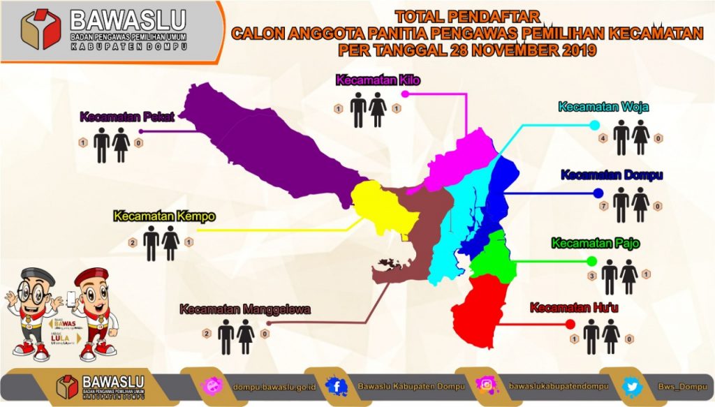 Kita membutuhkan Panwascam se-Kabupaten Dompu sebanyak 24 Orang di bagi 8 Kecamatan maka 1 Kecamatan Jumlahnya 3 orang